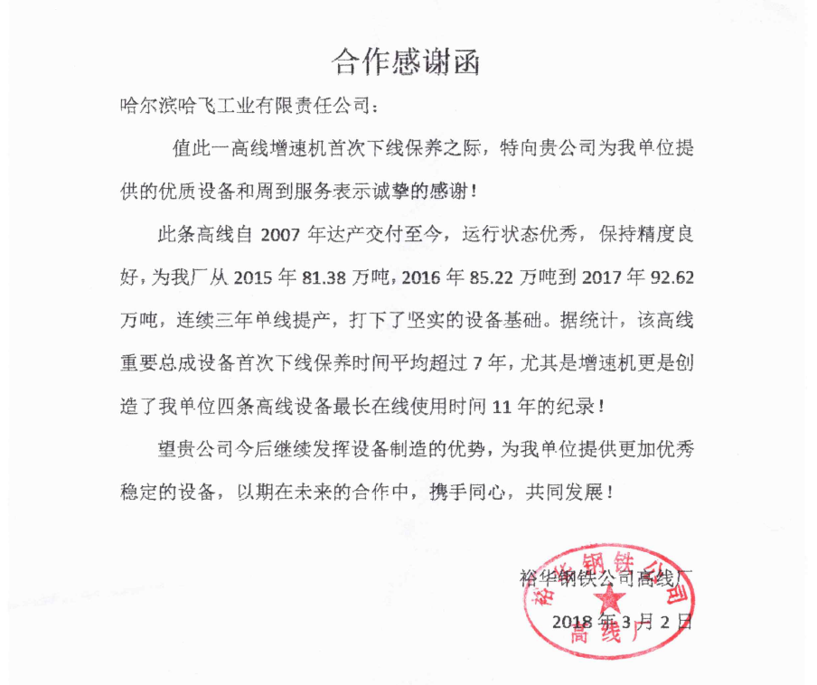 哈爾濱哈飛工業(yè)有限責任公司旗下的機電設備制造產(chǎn)業(yè)是目前國內(nèi)規(guī)模大、專業(yè)的高速線材軋機和棒材軋機整機及備件的生產(chǎn)制造企業(yè)。公司現(xiàn)坐落于哈爾濱市平房區(qū)汽車零部件工業(yè)園B區(qū),占地面積30000多平方米。現(xiàn)有員工近550人,其中具有中高級職稱的研發(fā)及工程技術(shù)人員100余人。 公司曾獲得冶金部授予的“高線軋機設備優(yōu)單位”稱號、國家技術(shù)進步二等獎等獎項,公司生產(chǎn)的十八項高線軋機重要部件通過了技術(shù)鑒定... +MORE